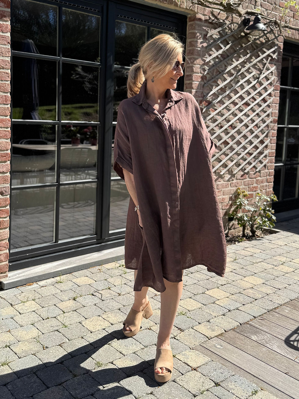 Robe longue bleu marine en matière t-shirt, inscription ICONIC jaune, col V, petites manches, c'est une taille unique qui convient du 36 au 48